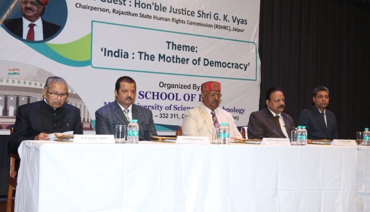 संविधान दिवस के अवसर पर लक्ष्मणगढ़ के मोदी विश्वविद्यालय ने समारोह की थीम ‘इंडिया: द मदर ऑफ डेमोक्रेसी’ पर आधारित कार्यक्रम का आयोजन किया गया. कार्यक्रम में मुख्य अतिथि के रूप में राजस्थान राज्य मानवाधिकार आयोग के अध्यक्ष न्यायमूर्ति गोपाल कृष्ण व्यास उपस्थित रहे.