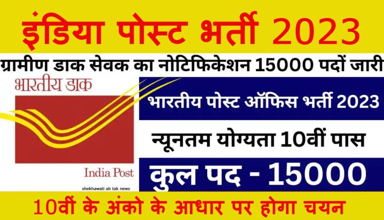 भारतीय डाक विभाग द्वारा ग्रामीण डाक सेवक के 15000 पदों पर भर्ती का नोटिफिकेशन जारी किया है. भारतीय डाक विभाग में ग्रामीण डाक सेवक के दसवीं पास अभ्यर्थियों के लिए भर्ती निकाली है. इसमें ग्रामीण डाक सेवक, ब्रांच पोस्ट मास्टर, असिस्टेंट ब्रांच पोस्ट मास्टर के पद शामिल हैं. India Post GDS Recruitment 2023 के लिए योग्य एवं इच्छुक अभ्यर्थी ऑफिशियल वेबसाइट के माध्यम से ऑनलाइन आवेदन कर सकते हैं. India Post GDS Recruitment 2023 के लिए ऑनलाइन आवेदन 22 मई 2023 से 11 जून 2023 तक रखी गई है. India Post GDS Recruitment 2023 के लिए योग्यता, आयु सीमा, आवेदन शुल्क एवं सभी जानकारी नीचे दी गई है. अभ्यर्थी आवेदन करने से पहले एक बार ऑफिशल नोटिफिकेशन जरूर देख लें.