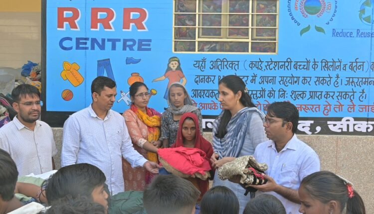 नगर परिषद आयुक्त सीकर शशिकांत शर्मा ने बताया कि अधिशाषी अभियन्ता प्रतिभा, राजस्व अधिकारी महेश चन्द्र योगी एवं सहायक अभियन्ता नागरमल के मार्गदर्शन में बुधवार को स्वच्छ दीपावली, शुभ दीपावली के तहत RRR सेन्टर पर जमा (चप्पल, जूते, कपड़े, इलैक्ट्रोनिक ) सामान जरूरतमंदो में बांटा गया। आयुक्त शशिकांत शर्मा ने शहरवासियों से अपील कि इस दीपावली अनावश्यक वस्त्रों और सामान को दान देकर खुशियों का दीप जलाए।