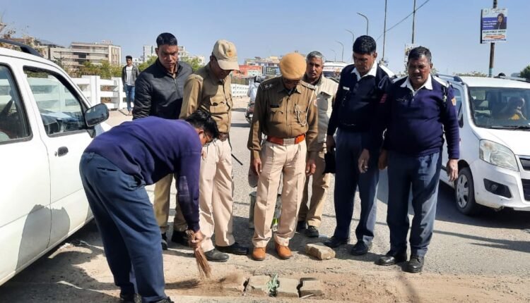 यातायात पुलिस कर्मियों ने की सड़क मरम्मत: नगर परिषद, पीडब्ल्यूडी को अवगत करवाने के बाद भी नहीं करवाई सड़क ठीक