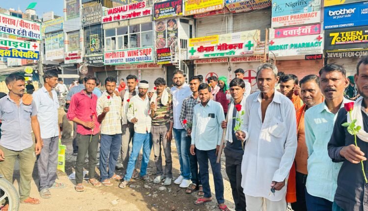 समर्थकों ने मजदूरों को गुलाब का फूल भेंट कर सादगी और मानवीयता का दिया संदेश