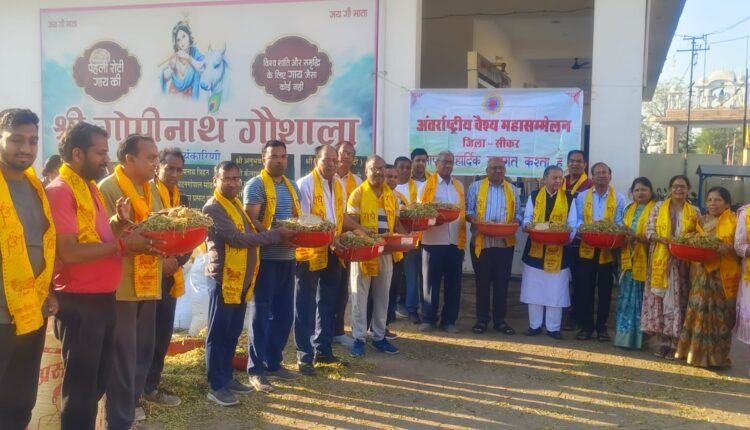 अंतराष्ट्रीय वैश्य महासम्मेलन के संस्थापक अध्यक्ष रहे स्व रामदास अग्रवाल का जन्मदिवस प्रदेशभर में मनाया गया इस कड़ी में सीकर शाखा द्वारा आज श्री गोपीनाथ गोशाला में गो सेवा कर वैश्य एकता दिवस मनाया गया इस दौरान गायों को हरा चारा,गुड़ ,रोटी एवम दलिया खिलाया गया सम्मेलन के जिला महामंत्री सुरेश अग्रवाल ने बताया कि इस अवसर पर जिलाध्यक्ष पवन मोदी ने बताया कि स्व रामदास अग्रवाल सांसद रहे ,उन्होंने वैश्य समाज के सभी घटक अग्रवाल, जैन माहेश्वरी, खंडेलवाल आदि महत्वपूर्ण घटकों को एक मंच प्रदान किया। उन्होंने जीवन पर्यन्त वैश्य समाज को संगठित करने का काम किया। इस अवसर पर दिनेश बियानी,नरेश बगड़िया,सुशील तोदी, ओमप्रकाश पटवारी,विजय झाझुका, सुधीर गर्ग,अनिल तोदी,चंद्रप्रकाश दोदराजका,गोपाल श्री गोपाल सोमानी,मंजू लोहिया,मधु सीहोटिया,सुमन खेतान,अनिता चिरानीय,सरोज अग्रवाल, संगीता खेतान,संगीता मोदी, गोपाल बिदावतक,राजाराम मोर ,महेश पंसारी,शिशिर मुंदरा, मितेश मोदी सहित अनेक लोग उपस्थित थे।