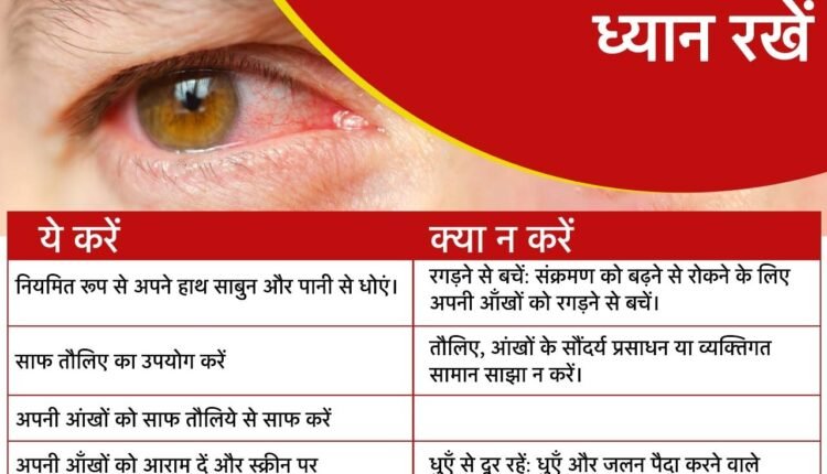 उन्होंने बताया कि नियमित रूप से अपने हाथों को साबुन और पानी से धोना चाहिए, साफ तौलिए का ही उपयोग करना चाहिए। अपनी आंखों को साफ तौलिये से साफ करना चाहिए। आंखों को आराम देंवे और मोबाइल व टीवी स्क्रीन पर कम समय बिताएना चाहिए।