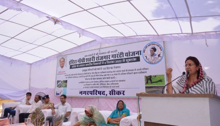 सीकर में योजना की शुरूआत सांवली रोड़ आयोजित कार्यक्रम से की गई. उद्योग एवं देवस्थान विभाग और जिले की प्रभारी मंत्री शकुंतला रावत एक दिवसीय दौरे पर रही.  इस दौरान उन्होंने इंदिरा गांधी शहरी रोजगार गारंटी योजना का स्थानीय लोगों के साथ श्रमदान कर जिला स्तरीय शुभांरभ किया. प्रभारी मंत्री शकुंतला रावत ने कहा इंदिरा गांधी शहरी रोजगार योजना के शुरूआत होने से शहर के गरीब तबके के लोग भी रोजगार पा सकेंगें.