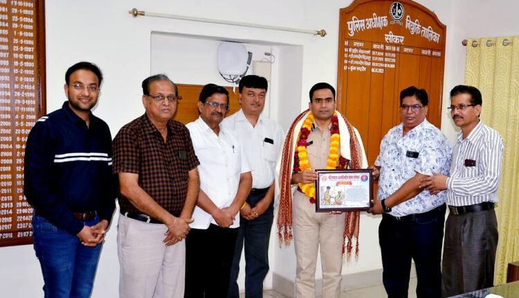 सीकर जिले के एसपी कुंवर राष्ट्रदीप को डीजीपी डिस्क से सम्मानित किये जाने पर सोमवार को शहर के गणमान्य नागरिकों द्वारा एसपी ऑफिस में बधाई दी गई एवं उन्हें शॉल, दुपट्टा ओढाकर व माल्यार्पण के साथ अभिनंदन पत्र भेंट किया.