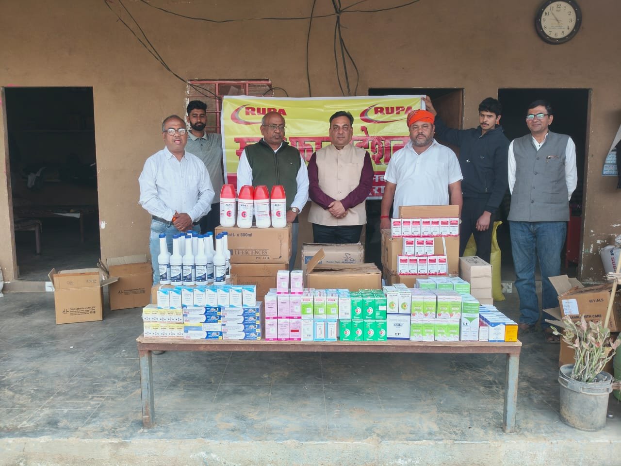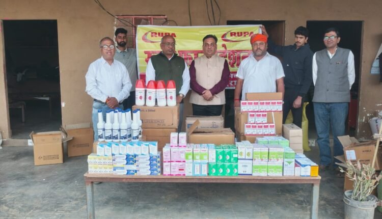 कामधेनु गौ चिकित्सालय में रूपा फाउंडेशन द्वारा गायों के उपचार हेतु दवाइयों की मदद