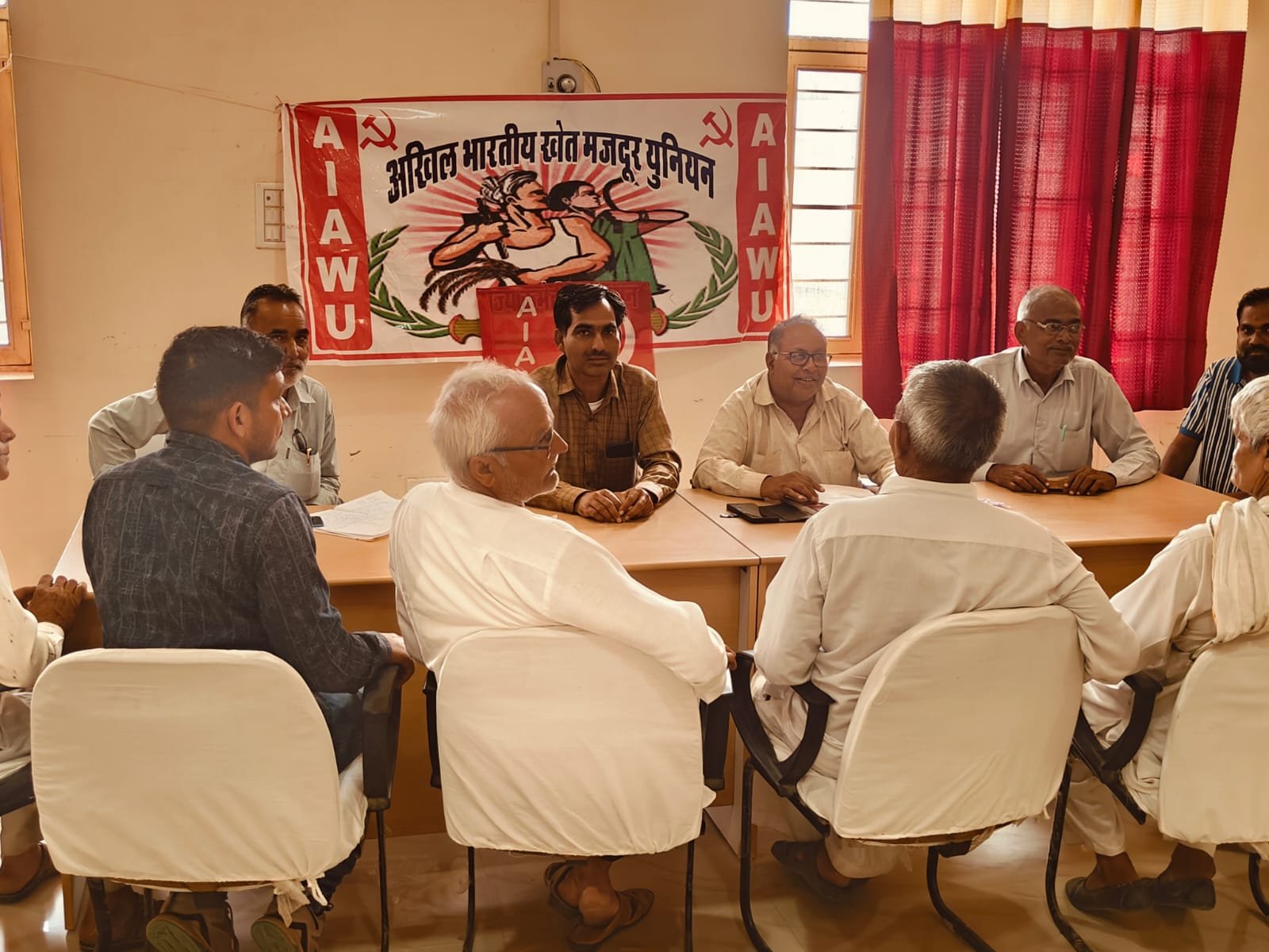 अखिल भारतीय खेत मजदूर यूनियन के जिला सचिव कुंदन लाल ने प्रेस बयान कर जारी कर बताया कि आज अखिल भारतीय खेत मजदूर यूनियन जिला कमेटी की मीटिंग पूरण सिंह शेखावत की अध्यक्षता में हुई। मीटिंग में कुंदन लाल, हेमाराम किरडोली, प्रमोद शर्मा ,पूरण सिंह शेखावत ,अशोक पेंटर , मनफूल सिंह, हरसराम ,गोपाल सिंह, बलदेव सिंह, धनाराम , घनश्याम सांखला व भंवरलाल सुंडा उपस्थित थे। मीटिंग को संबंधित करते हुए अखिल भारतीय खेत मजदूर यूनियन के राज्य अध्यक्ष राम रतन बगड़िया ने कहा कि आज डबल इंजन की सरकार ना तो बीपीएल धारकों को समय पर राशन का अनाज देती है ।और पिछले कई महीनो से सामाजिक योजनाऔ मैं मिलने वाली सामाजिक सहायता का भी राज्य सरकार ने वितरण नहीं किया है ।