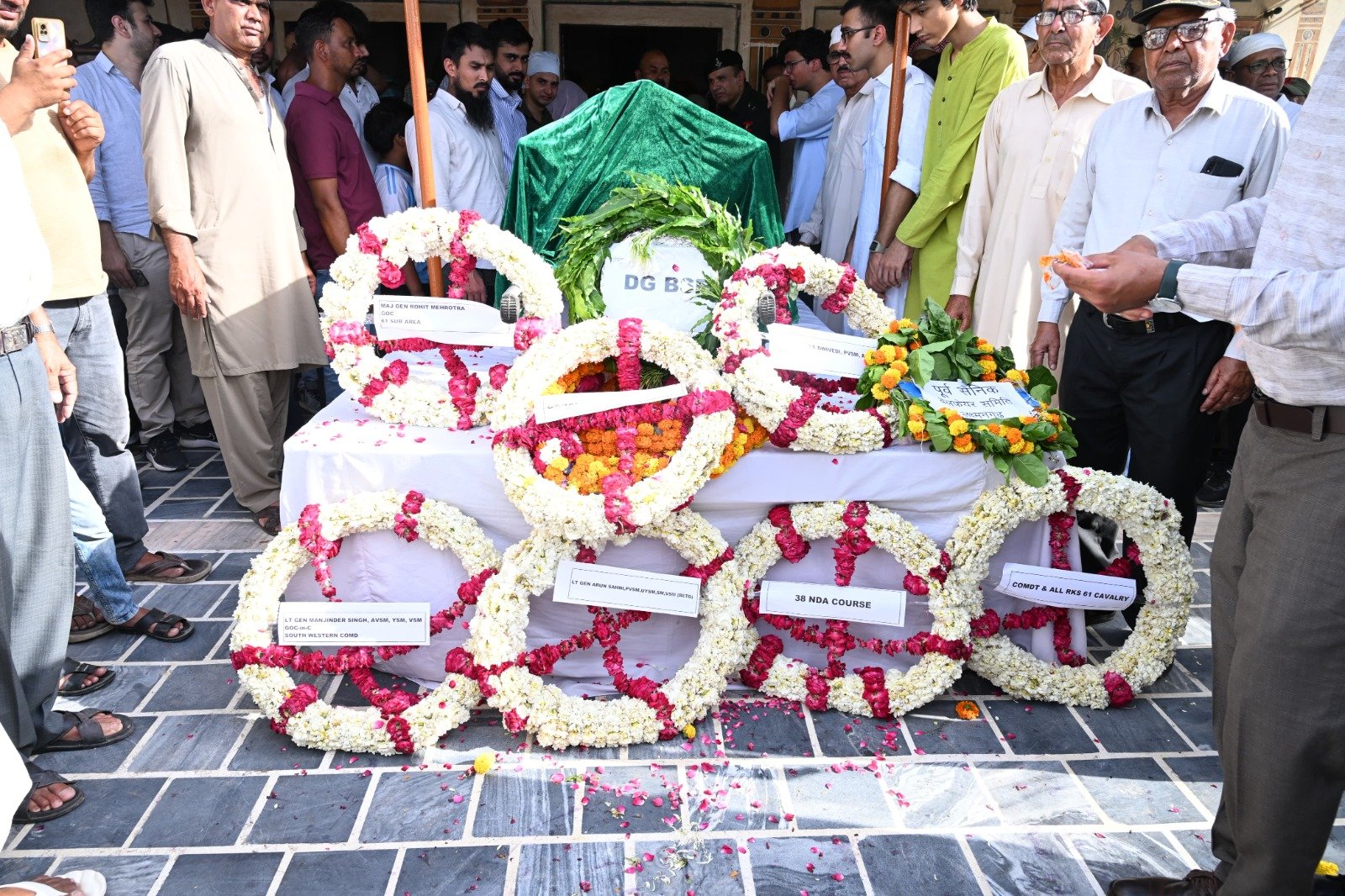 लेफ्टिनेंट जनरल मनजिंदर सिंह जीओसी साउथ वेस्टर्न कमांड, लेफ्टिनेंट जनरल अरुण साहनी कमांडेंट 61 कैवेलरी, DGP BSF के प्रतिनिधियों द्वारा पुष्प चक्र अर्पित किया गया।