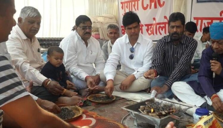 गुंगारा CHC को नए भवन में शिफ्ट करने की मांग: कलेक्ट्रेट के बाहर चार दिनों से धरने पर बैठे ग्रामीण, सरकार की सद्बुद्धि के लिए किया यज्ञ