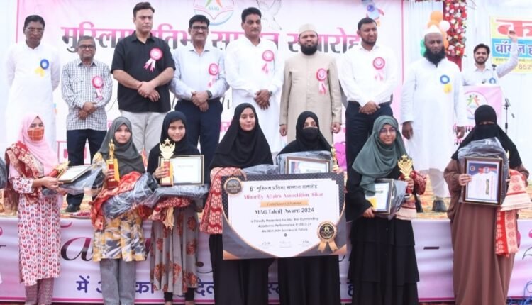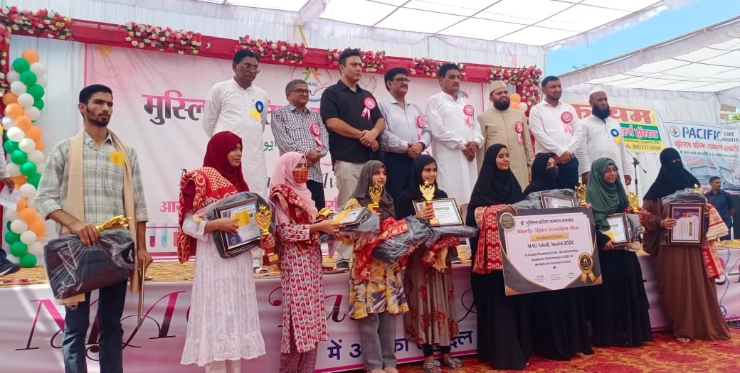 समारोह की अध्यक्षता बी के ग्रुप के चेयरमैन डॉ. अब्दुल रहीम खत्री ने की जबकि मुख्य अतिथि के तौर पर अन्य अतिथि राजस्थान वक्फ बोर्ड के चेयरमैन खानू खां बुधवाली, विधायक हाकम खां , सभापति जीवन खां , डॉ. असलम नागरा , मोटीवेटर दौलत खान, नौशाद अली सहित समाज के गणमान्य जन ने मुस्लिम समाज प्रतिभाओं को सम्मानित कर हौसला अफजाई की। संस्था महासचिव निसार अहमद जाटू ने बताया कि समारोह में समाज की 534 प्रतिभाओं, स्कूल बोर्ड में 80% से अधिक अंक प्राप्त कर्ता, कॉलेज ग्रेजुएट, पोस्ट ग्रेजुएट, सी ए , डॉक्टर, इंजीनियर, एडवोकेट नीट से प्रवेशित, सरकारी सेवा में नियुक्त, राष्ट्रीय खिलाड़ी और मुफ्ती हाफिज गण को एम ए जी अवार्ड, मोमेंटो और लैपटॉप बैग से सम्मानित किया गया, सम्मान पाकर प्रतिभाओं के चेहरे खिल उठे।