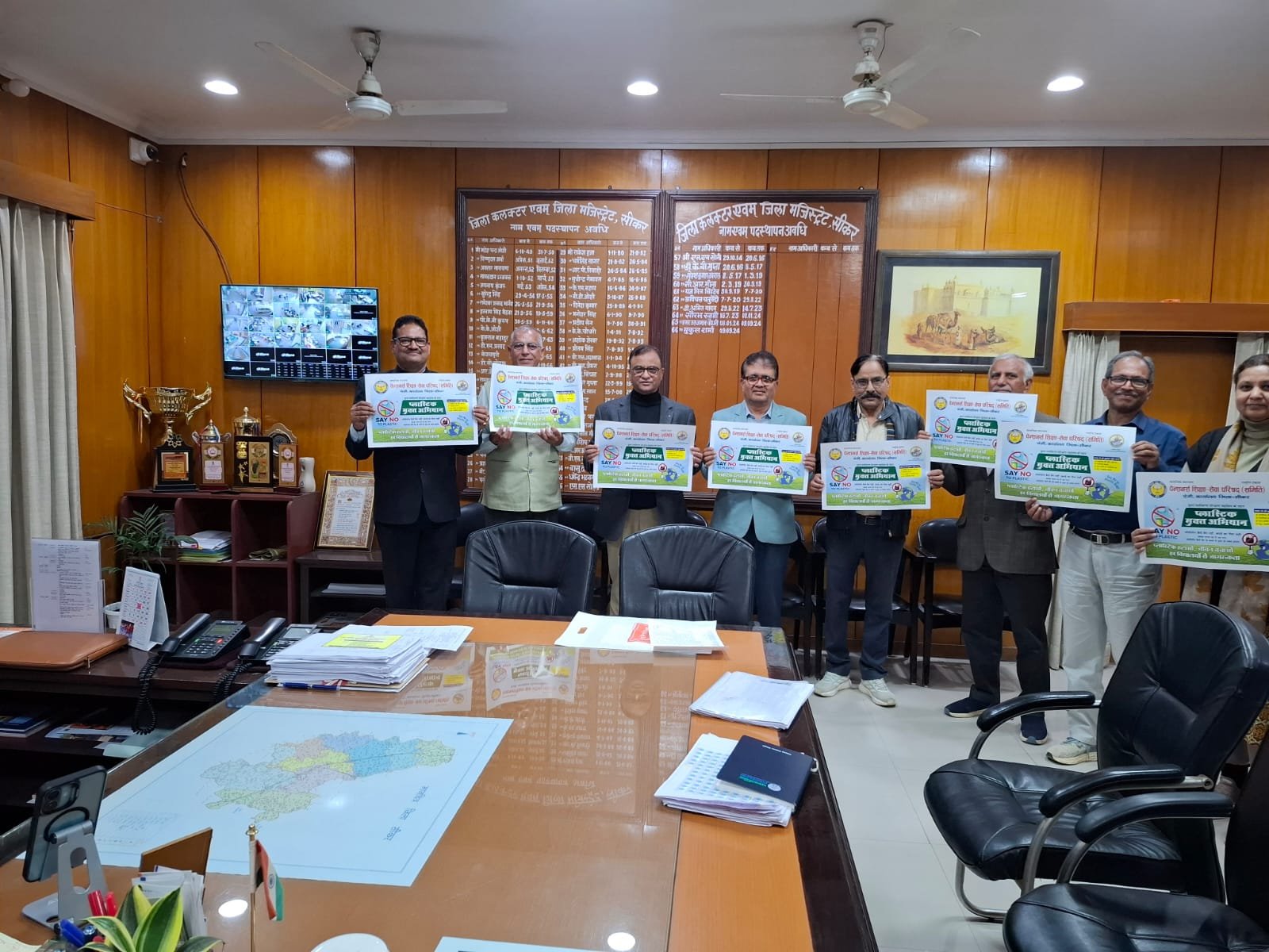 जिला कलेक्टर ने पेंशनर्स शिक्षा सेवा परिषद के प्लास्टिक मुक्त अभियान पोस्टर का किया विमोचन