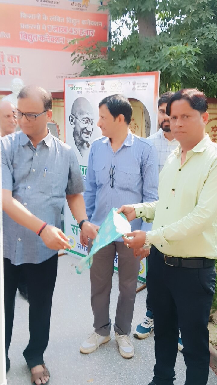 जिला कलेक्टर मुकुल शर्मा ने शनिवार को कलेक्ट्रेट स्थित विभिन्न सरकारी कार्यालयो में साफ-सफाई एवं स्वच्छता का निरीक्षण कर आवश्यक दिशा-निर्देश दिए। इस दौरान उन्होंने जिला परिषद के सीईओ नरेंद्र पुरोहित सहित अन्य अधिकारियों के साथ कलेक्ट्रेट परिसर में साफ-सफाई कर श्रमदान किया। इस दौरान उन्होंने नगर परिषद एवं कलेक्ट्रेट के कर्मचारियों को जुट के बने बैग वितरित कर प्लास्टिक के थैले इस्तेमाल नहीं करने के लिए प्रेरित किया।