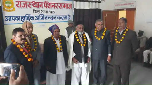जिला पेंशनर कल्याण केंद्र में मंगलवार को राजस्थान पेंशनर समाज जिला चूरू की मासिक बैठक हुई। बैठक की अध्यक्षता जिलाध्यक्ष बिरजू सिंह राठौड़ ने की, जबकि संयुक्त सचिव शेरसिंह ने पिछली बैठक का प्रतिवेदन और कार्यों का विवरण प्रस्तुत किया। डॉ. एफएच गौरी ने पेंशनरों को संबोधित किया। इस दौरान विभिन्न सम्मानित पेंशनरों में डॉ. शंकर सिंह गौड़, राधेश्याम शर्मा, हाजी शेख नियाजुलहक गौरी, शेरसिंह चौहान, आदि शामिल थे। विशेष रूप से हाजी शेख नियाजुलहक गौरी और रूघाराम मांझू का सम्मान किया गया। संचालन सचिव पूरनमल सोनी ने कार्यक्रम का संचालन किया।