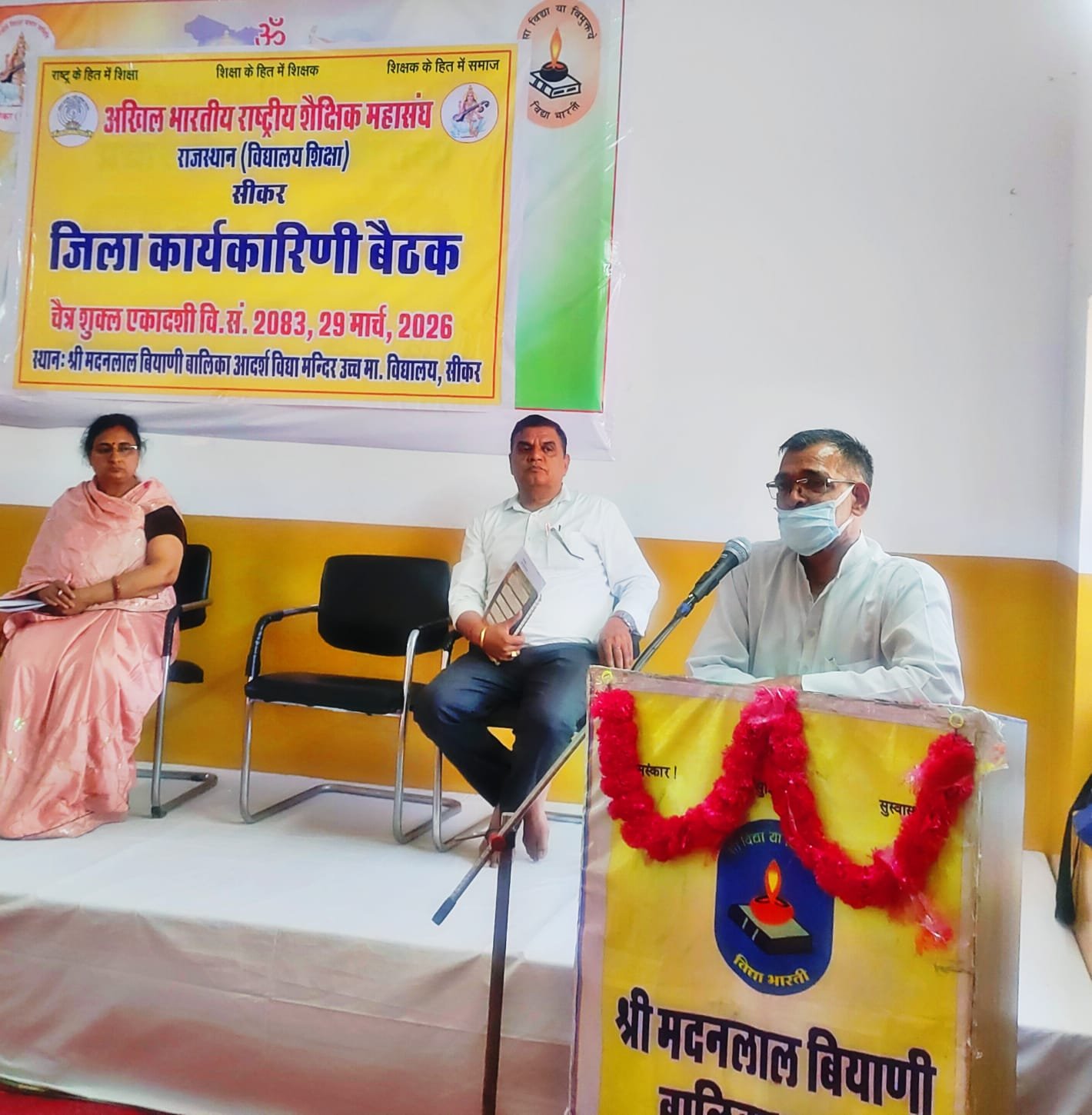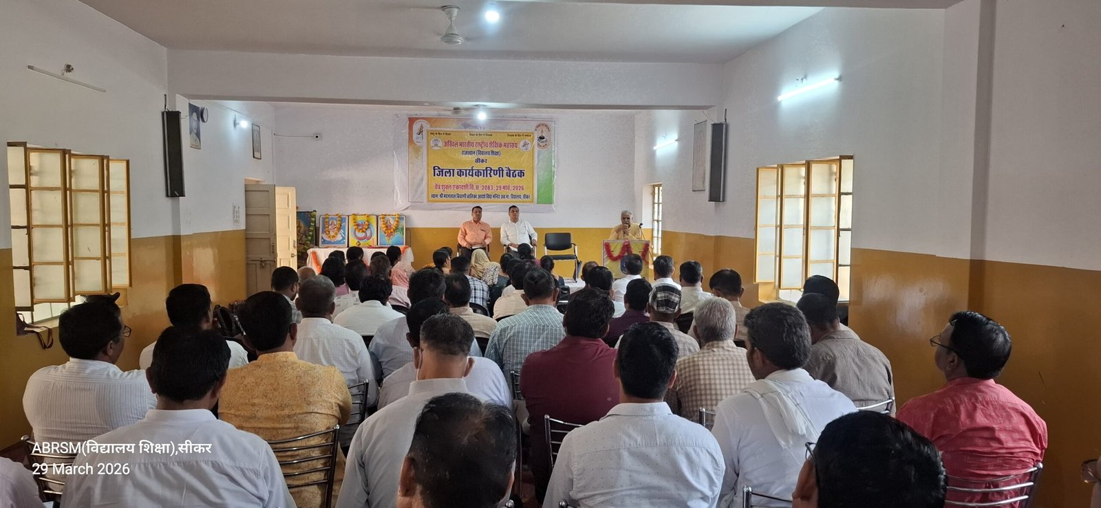 अखिल भारतीय राष्ट्रीय शैक्षिक महासंघ, राजस्थान (विद्यालय शिक्षा) जिला सीकर की जिला कार्यकारिणी की महत्वपूर्ण बैठक रविवार को शहर स्थित श्री मदन लाल बियानी बालिका उच्च माध्यमिक आदर्श विद्या मंदिर, ऋषिकुल मार्ग में सम्पन्न हुई। बैठक में विभिन्न प्रकोष्ठों के पदाधिकारियों एवं उपखंडों (उपशाखाओं) से आए प्रतिनिधियों ने उत्साहपूर्वक भाग लेते हुए संगठनात्मक विषयों पर गंभीर विचार-विमर्श किया।