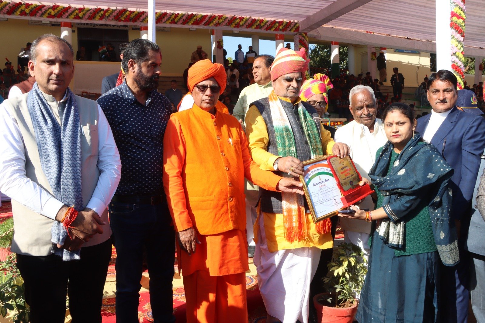 सीकर मे गणतंत्र दिवस समारोह में जिला स्तर पर सम्मानित होने पर गोसेविका ज्योति तनवानी को गौ सेवा दल टीम राष्ट्रीय गौ रक्षक संघ श्रीलंका पूरी बालाजी मंदिर सीकर संभाग व्यापार संघ विश्व हिंदू परिषद, गोपीनाथ गौ सेवा समिति, सिंधी समाज, पारीक सोशल ग्रुप एवं होटल मीरा पैलेस के मालिक रवि गिनोडिया राधैश्याम पारीक ने भगवान श्री कृष्ण की छवि भेंट कर गो भक्तो ने सम्मान किया,तनवानी जी ने सभी पदाधिकारीयो एवं सस्थायो का आभार व्यक्त किया