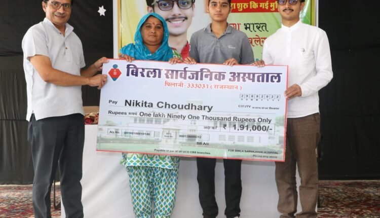 युवा भामाशाह और पिलानी के बिरला अस्पताल के निदेशक डॉ मधुसूदन मालानी को चिड़ावा की निकिता चौधरी की पीड़ा का जब पता चला तो उन्होंने न केवल उसकी आर्थिक मदद की है, बल्कि उसका हौंसला भी बढ़ाया है