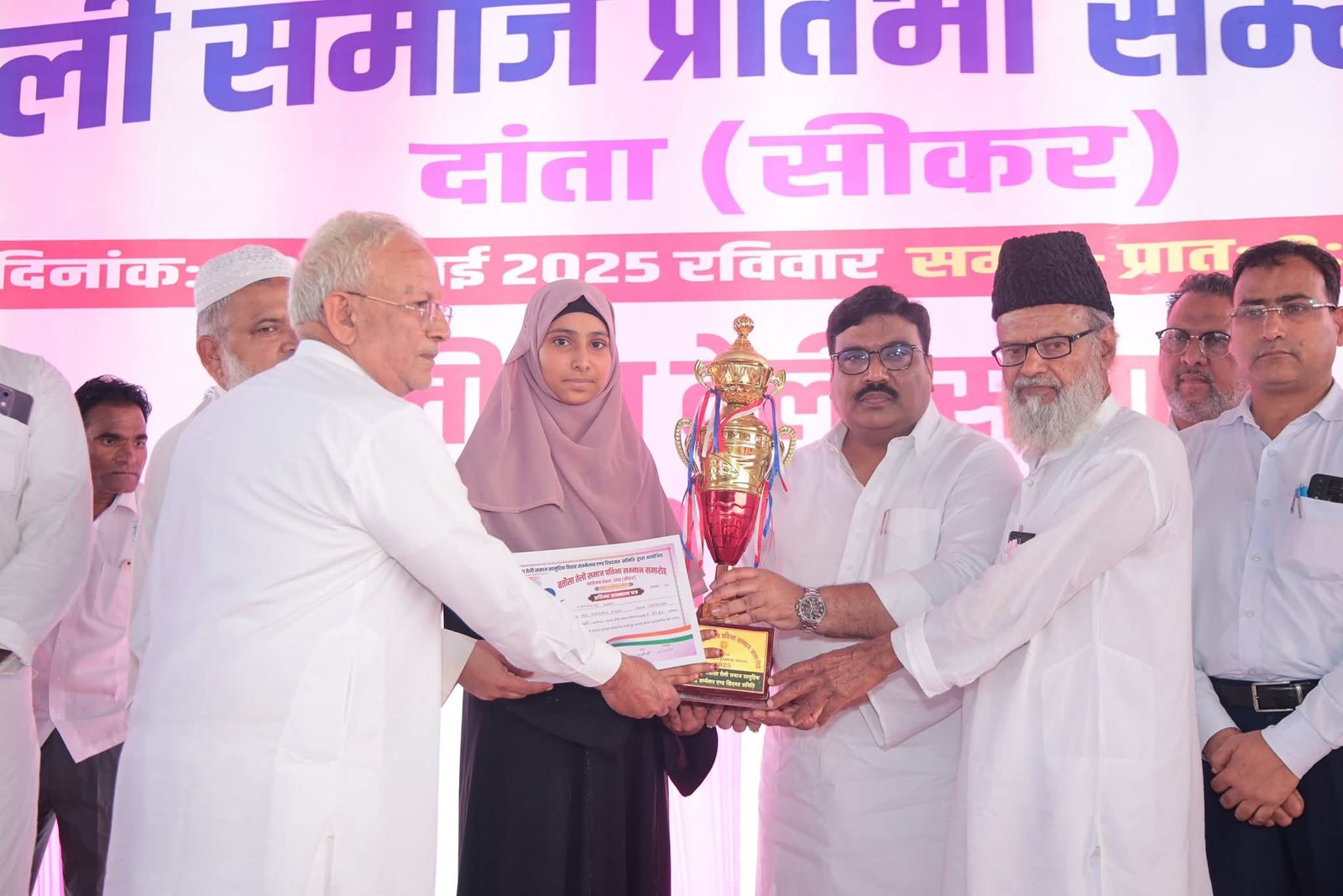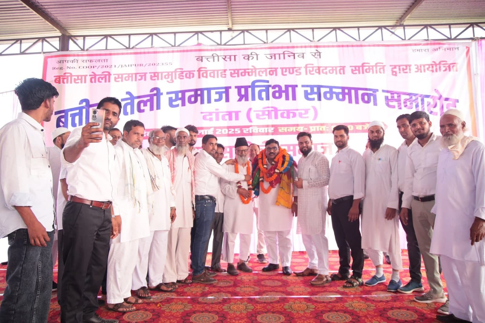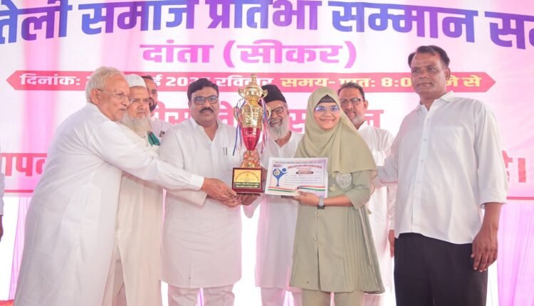 बत्तीसा तेली समाज सामूहिक विवाह सम्मेलन व खिदमत समिति के तत्वावधान में दांता ईदगाह में समाज का प्रतिभा सम्मान समारोह आयोजित किया गया। समारोह की अध्यक्षता एमडी चोबदार प्रदेश अध्यक्ष कांग्रेस अल्पसंख्यक विभाग व मदरसा बोर्ड चेयरमैन ने की। समाज के कक्षा 10वीं व 12वीं में 70 प्रतिशत से अधिक अंक लाने वाले 106 विद्यार्थियों, 23 आलीम हजरात, 32 सरकारी कर्मचारी व 136 भामाशाहों को सम्मानित किया गया। कक्षा दसवीं में सानिया बानो चारणवास 97% अंक लाने पर प्रथम स्थान, सादिया सीकर 96.67% अंक लाने पर द्वितीय स्थान, मोहम्मद साहिल बागावास 94.50% अंक लाने पर तृतीय स्थान प्राप्त किया। कक्षा 12वीं आर्ट्स में अफरीन बानो सीकर 95% अंक लाने पर प्रथम स्थान, कॉमर्स में मोहम्मद शहीद उदयपुरवाटी 85% अंक लाने पर प्रथम स्थान, विज्ञान में सना बानो सीकर 97.60% अंक लाने पर प्रथम स्थान प्राप्त किया। इस दौरान अब्दुल लतीफ प्रदेश अध्यक्ष प्रांतीय मुस्लिम तेली महापंचायत सहित बत्तीसा खेड़ा, अहमदाबाद, मुंबई, सीकर, पलसाना, रानोली, लक्ष्मणगढ़, लोसल, कुचामन, मकराना व जयपुर आदि जगहों से समाज के लोगों ने भाग लिया।