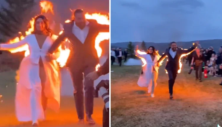 दूल्हा-दुल्हन ने खुद को लगाई आग, हाथ पकड़कर यूं भागने लगे दोनों; वीडियो ने चौंकाया