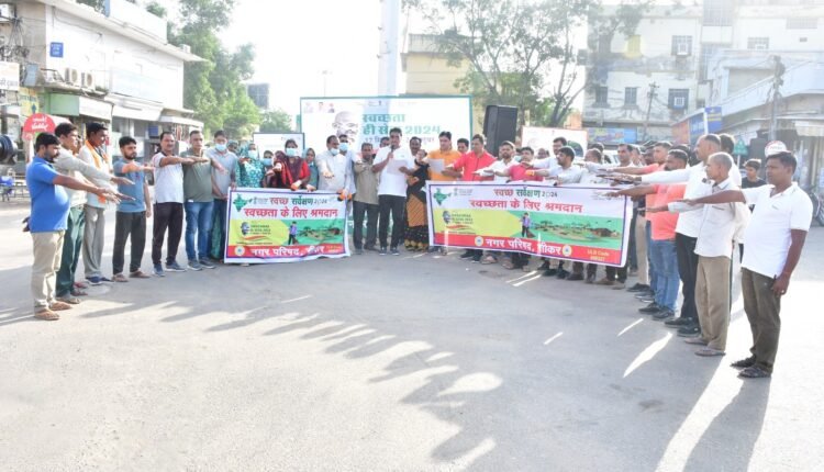 नगर परिषद सीकर द्वारा मंगलवार को सुबह स्वच्छता पखवाड़े के अन्तर्गत स्वच्छता ही सेवा कार्यक्रम के तहत ''स्वभाव स्वच्छता संस्कार स्वच्छता'' की थीम पर नगर परिषद के अधिकारी व कर्मचारियों, जनप्रतिनिधियों द्वारा किया गया श्रमादान