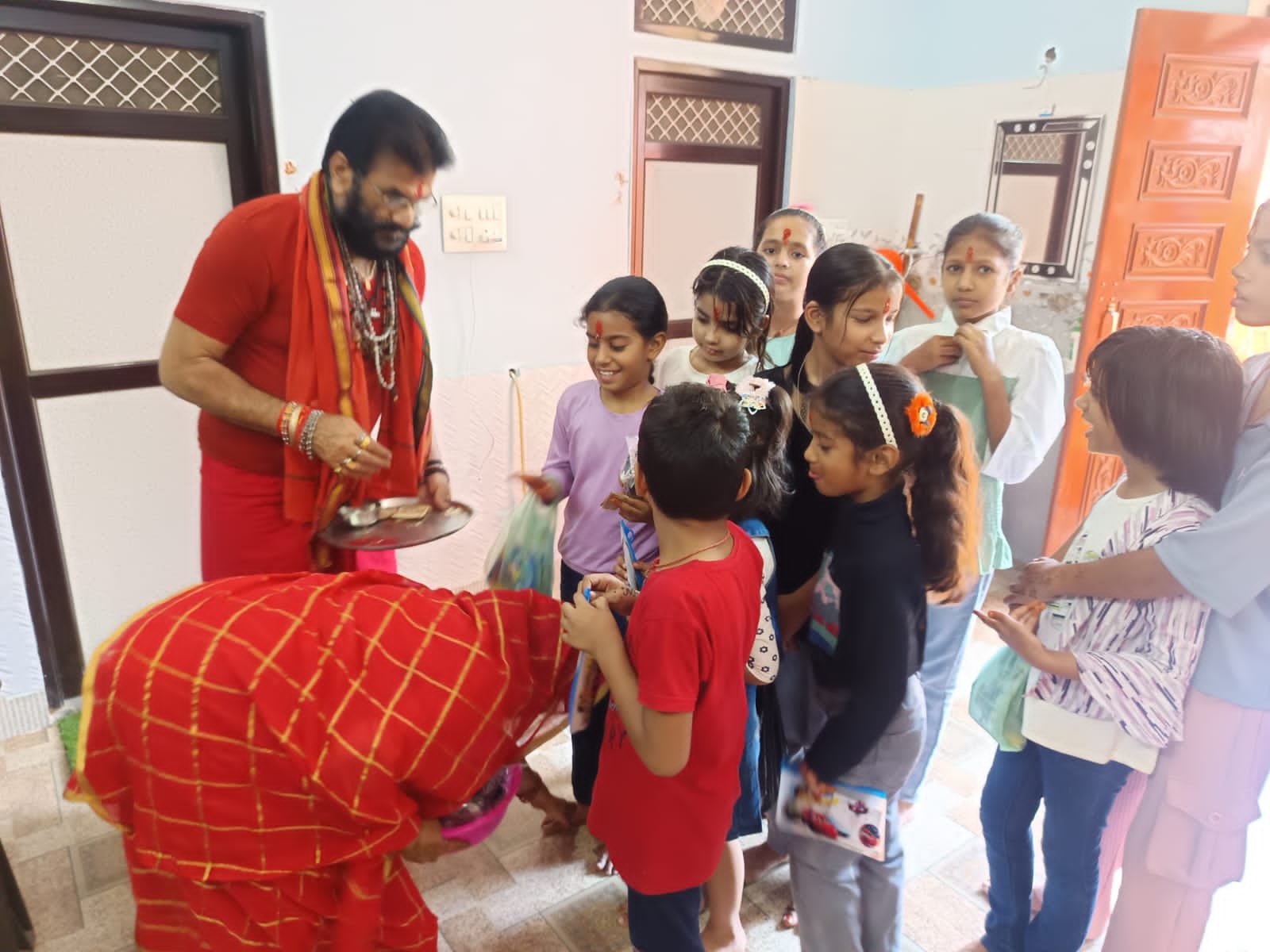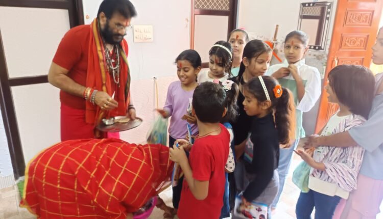 भाजपा नेता शंकर लाल शर्मा ने देवी आराधना के बाद कन्याओं की पूजा कर दक्षिणा भेंट और आश्रीवाद प्राप्त किया