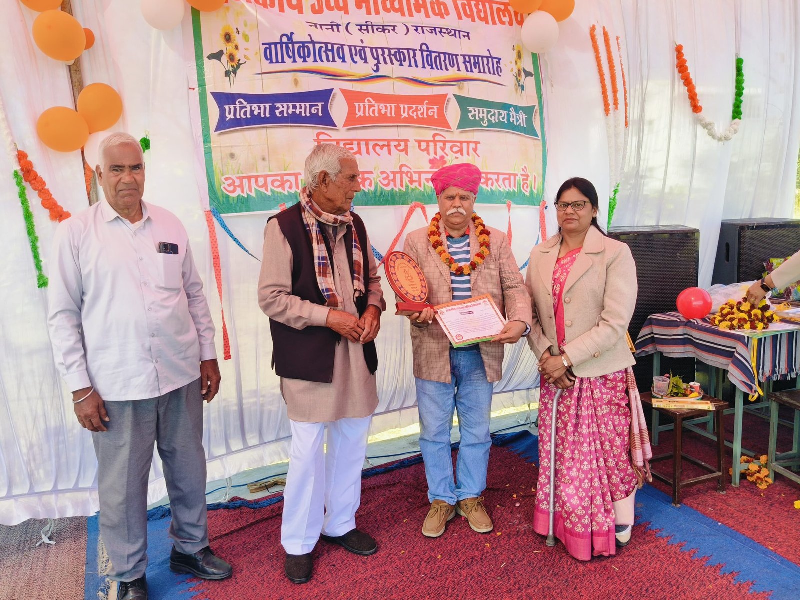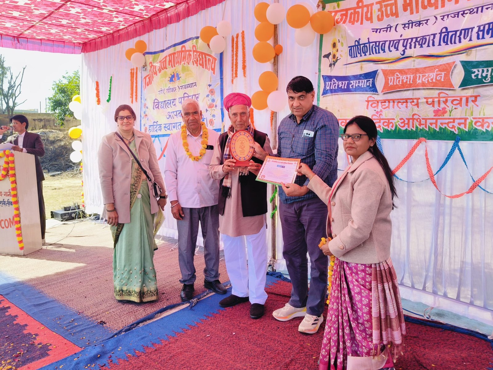 नानी स्कूल मे भामाशाहों का हुआ सम्मान सीकर 25.01.25 राजकीय उच्च माध्यमिक विद्यालय नानी में आज वार्षिक उत्सव, पुरुस्कार वितरण तथा भामाह सम्मान समारोह का आयोजन हुआ। समारोह के मुख्य अतिथि नाथूराम बाजिया समारोह अध्यक्ष सेवानिवृत्त प्राध्यापक भागीरथ सिंह तेतरवाल विशिष्ट अतिथि भगवतसिंह खींची॓ ‘यथार्थ’, श्रवण चौधरी सी एल सी, महेन्द्र बाजिया, भवानी सिंह बाजिया, नरेन्द्र सिंह महरिया, एक सी बी ई ओ महेंद्र कृष्णिया रहे।
