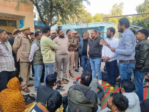 परिजनों ने बिल्डर और मालिक पर लापरवाही का आरोप लगाते हुए किया प्रदर्शन