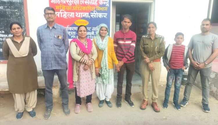 सीकर महिला थाना अधिकारी मुनेशी मीणा पति-पत्नी के बीच लंबे अरसे से चले आ रहे विवादों को समझाईश कर सुलझाने में जुटी हुई है महिला थाना अधिकारी का पदभार ग्रहण करने के साथ ही ऐसे कई प्रकरण जिनमें पति-पत्नी के बीच काफी लंबे अरसे से विवाद चल रहा था उन प्रकरणों में आपसी समझाइस कर राजीनामा करवाया है