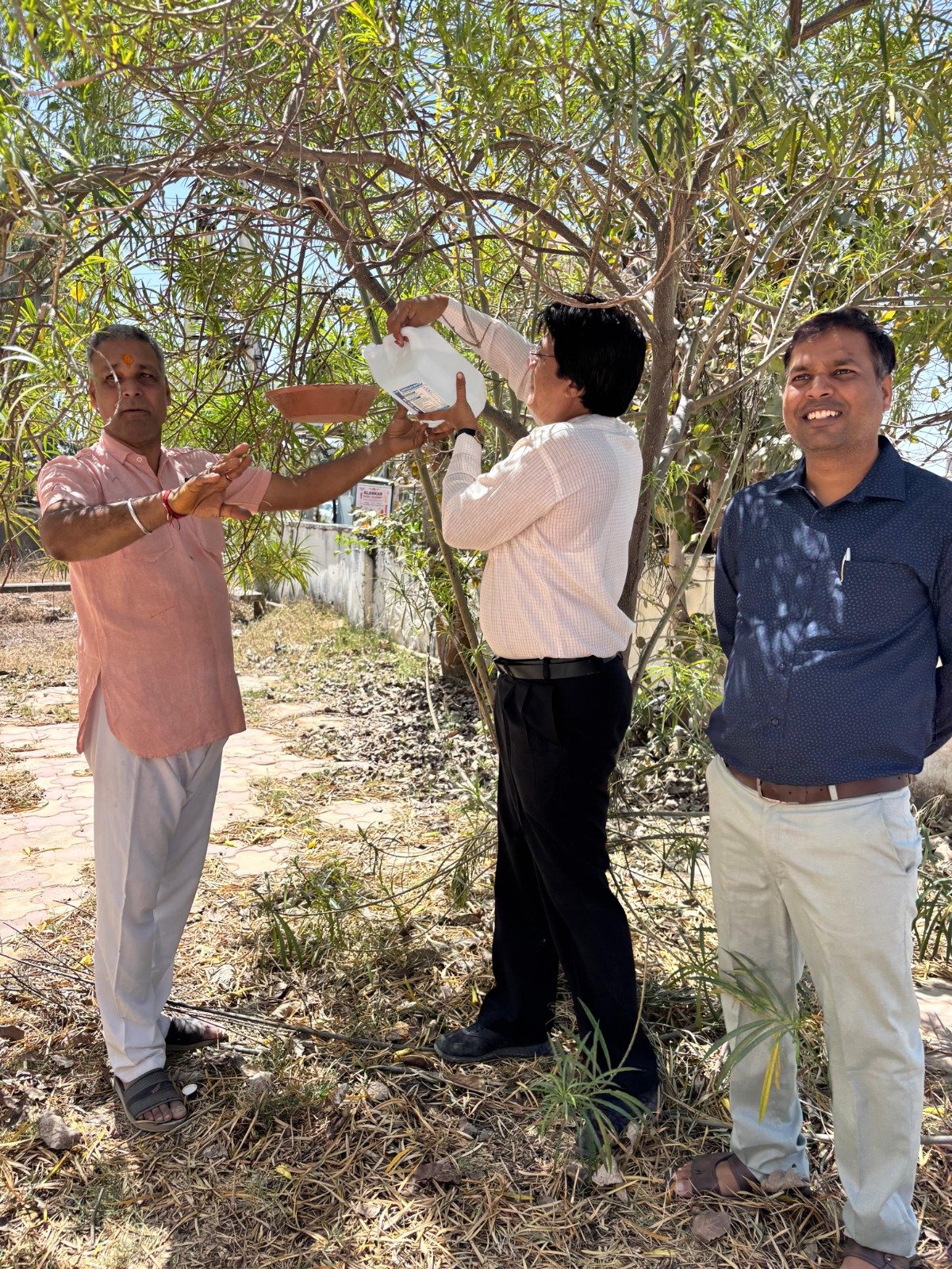 जलदाय विभाग में आज आराधना पारीक द्वारा परिंदों के लिए परिंडे लगाने का अभियान शुरू किया गया। अधीक्षण अभियंता रमेश कुमार राठी ने इस पहल का शुभारंभ किया। वैदिक पंडित मनोज पारीक ने बताया कि हर साल इस अभियान के तहत कई स्थानों पर परिंडे लगाए जाते हैं। उन्होंने सभी से अधिक से अधिक परिंडे लगाने की अपील की, ताकि पक्षियों को जल व आहार की सुविधा मिल सके। अधीक्षण अभियंता रमेश कुमार राठी ने इस अभियान की सराहना करते हुए अपना उदबोधन प्रस्तुत किया। इस कार्यकर्म में अधिशासी अभियंता राम कुमार चाहिल, राम प्रकाश गोड़,, वरिष्ठ रसायन गोपाल शर्मा, सहायक अभियंता प्रवीण कुमार मातवा, प्रशसनिक अधिकारी प्रवीण कुमार शर्मा, सहायक प्रशसनिक अधिकारी सचिन माथुर, गोविन्द सरोज, रामगोपाल शिवम माथुर, रामलाल यादव, कमला देवी आदि मौजूद थे।।