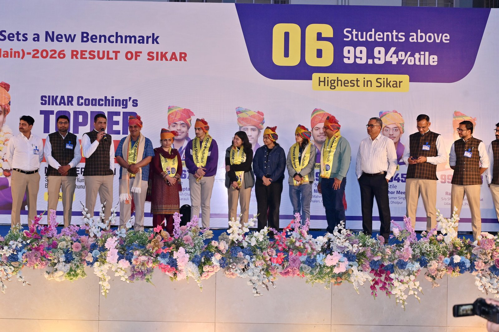 सीकर स्थित आईआईटी जेईई एवं नीट कोचिंग संस्थान पीसीपी, प्रिंस में जेईई-मेन 2026 में टॉपर्स रही प्रतिभाओं हेतु सम्मान समारोह का आयोजन किया गया। कार्यक्रम में 99.9768 परसेंटाइल के साथ सीकर कोचिंग्स में टाॅपर रहे नवदीप मान, 99.9677 परसेंटाइल अंक प्राप्त विवेक गुप्ता, 99.9519 परसेंटाइल प्राप्त विकास ढकरवाल, 99.9478 परसेंटाइल प्राप्त निखिल, 99.9451 परसेंटाइल प्राप्त बृजकिशोर मीणा एवं 99.9423 परसेंटाइल प्राप्त राहुल कुमावत को अभिभावकों सहित सम्मानित किया गया।