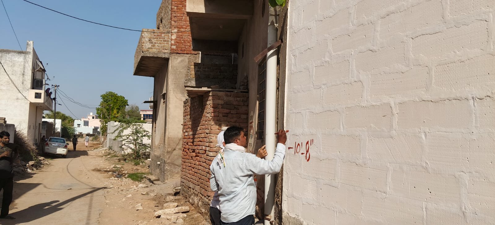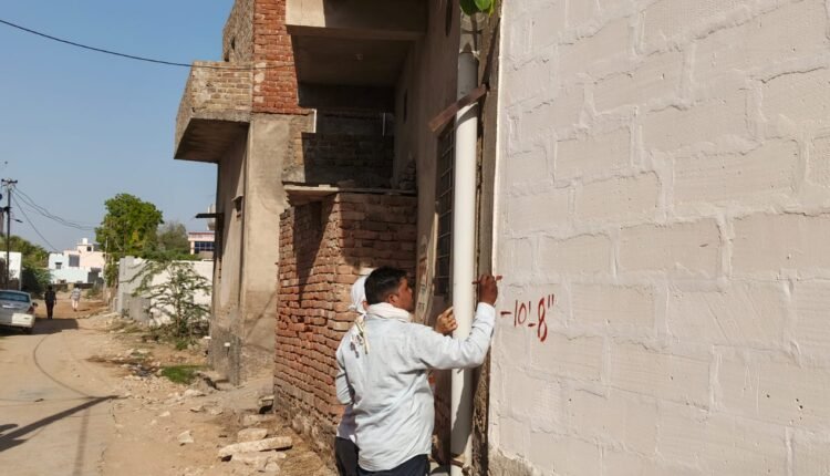 पुरोहितजी ढाणी में सड़क चौड़ीकरण के लिए निशानदेही कार्य प्रारंभ