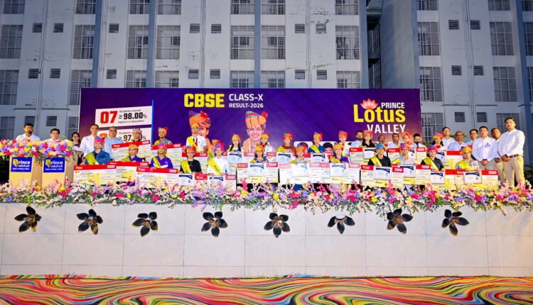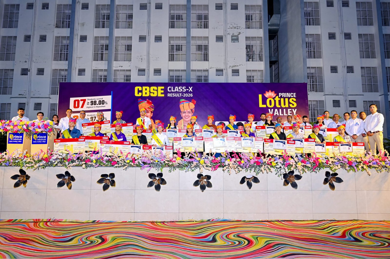 सीकर स्थित सीबीएसई इंग्लिश मीडियम स्कूल प्रिंस लोटस वैली में सीबीएसई 10वीं बोर्ड में शानदार अंक हासिल करने वाले विद्यार्थियों के सम्मान में भव्य सम्मान समारोह का आयोजन किया गया। इस दौरान कुल 7 लाख 23 हजार रू. के नकद पुरस्कार से टाॅपर्स विद्यार्थियों का अभिभावकों सहित सम्मान किया गया। कार्यक्रम में 98.80 प्रतिशत अंक हासिल तविशा सिंह व दृश्या चौधरी को 1-1 लाख रु. के नकद पुरस्कार से सम्मानित किया गया। 98.40 प्रतिशत हासिल राज्यवर्द्धन सिंह व मोहित, 98.20 प्रतिशत हासिल अभिनव आनंद तथा 98.00 प्रतिशत हासिल हंसिका व जतिन महला प्रत्येक को 51-51 हजार रु. देकर सम्मानित किया गया। इसी प्रकार 97.80 प्रतिशत हासिल अभिनव शेवरान, प्रियांशी महला व ऊर्वशी कंवर, 97.60 प्रतिशत हासिल अवन्या कुमावत, भावी शर्मा, राहुल व कंचन प्रत्येक को 21-21 हजार रू. का पुरस्कार दिया गया। 11 अन्य प्रतिभाओं को 11-11 हजार रू. का नकद पुरस्कार दिया गया। समारोह में प्रिंस एजुहब निदेशक जोगेंद्र सुण्डा, चेयरमैन डा. पीयूष सुण्डा, मुख्य प्रबंध निदेशक राजेश ढिल्लन, प्रबंध निदेशक एम.आर. अग्रवाल, मनोज ढ़ाका, प्रिंसिपल पूनम चौहान, प्रोमिला यादव आदि ने 90 प्रतिशत से अधिक अंक हासिल करने वाले कुल 367 विद्यार्थियों को माल्यार्पण, साफा पहनाकर, दीवार घड़ी, अम्ब्रेला, बैग व स्मृति चिन्ह देकर तथा अभिभावकों को शाॅल ओढ़ाकर सम्मानित किया। 10वीं सीबीएसई रिजल्ट में प्रिंस लोटस वैली के 7 विद्यार्थियों ने रिकाॅर्ड 98 प्रतिशत से अधिक, 93 विद्यार्थियों ने 95 प्रतिशत से अधिक तथा 367 विद्यार्थियों ने 90 प्रतिशत से अधिक अंक हासिल कर शानदार सफलता हासिल की है।