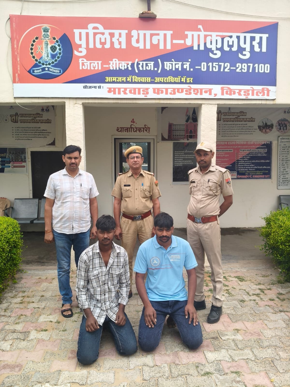 आरोपी पुलिस से बचने बदल रहे थे ठिकाने आरोपियों की गिरफ्तारी के लिए पुलिस ने उनके आने-जाने का रूट आईडेंटिफाई किया। उनके घरों में दबिश दी। मुखबिर की सूचना पर आज आरोपी सुनील मीणा उर्फ गोरिया (21) पुत्र जीवणराम और राजेंद्र उर्फ मोटा (19) पुत्र प्रेमाराम रामू को बास चौराहे के पास से दबोचा।