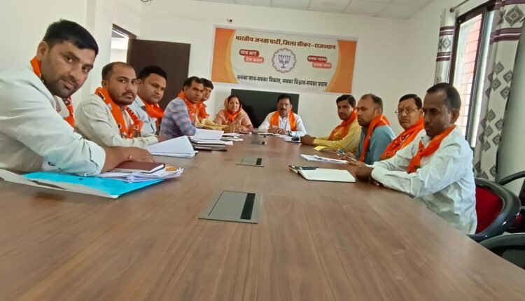 Sikar News: भाजपा प्रदेश उपाध्यक्ष मुकेश दाधीच ने जिलाध्यक्ष इंद्रा चौधरी के साथ बूथ सशक्तिकरण अभियान को लेकर बैठक की. पार्टी के बूथ सशक्तिकरण अभियान को लेकर अब तक किये गये कार्यों की जानकारी ली.