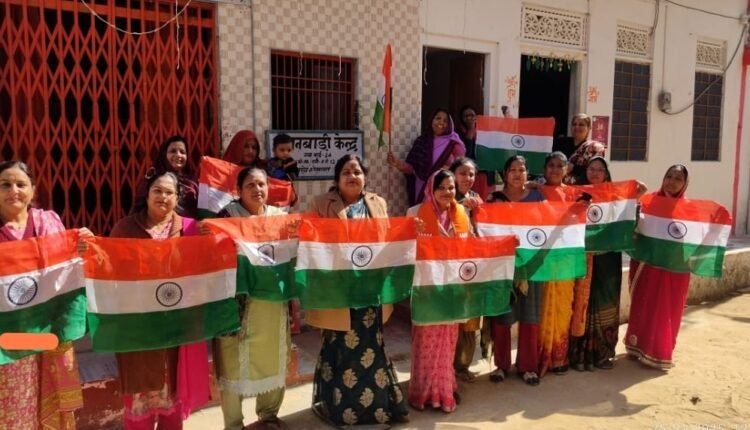 महिला मोर्चा की जिला अध्यक्ष अनिता शर्मा के नेतृत्व में घर-घर तिरंगे झंडे वितरित किए गए