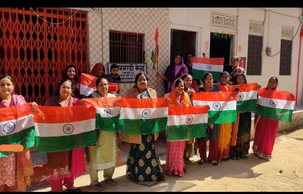 भाजपा महिला मोर्चा की जिला अध्यक्ष अनिता शर्मा के नेतृत्व में गणतंत्र दिवस की पूर्व संध्या पर आंगनबाड़ी केंद्र व अनेक वार्डों में माताओ, बहनो को घरों की छतो पर लगाने के लिए तिरंगे झंडे वितरण किये, श्रीमती शर्मा ने बताया कि भारत हर साल 26 जनवरी को गणतंत्र दिवस के रूप में मनाता है जो हमारे देश के लिए एक ऐतिहासिक और गर्व का दिन है यह वह दिन है जब 1950 में भारत का संविधान लागू हुआ और भारत एक गणराज्य बन गया,हमारे देश के प्रधानमंत्री नरेंद्र भाई मोदी जी का कहना है कि 26 जनवरी को हमें हर घर पर तिरंगा झंडा फहराना चाहिए उसी के तहत सीकर भाजपा महिला मोर्चा की बहनों ने घर घर जाकर तिरंगे झण्डे घरों की छतो पर लगाने के लिए भेंट किए जिसमे मोर्चा की उपाध्यक्ष शारदा काबरा,कंचन अग्रवाल,वीणा शर्मा,सरोज शेखावत,पूजा शुक्ला,कविता चौधरी,सोनू सोनी,ललिता शुक्ला,लक्ष्मी सिंधी,सुनीता सोनी,पूजा सोनी,विमला शर्मा,उमा शुक्ला,मीणा ननवानी,सोनिया आदि वार्ड वासी उपस्थित रही