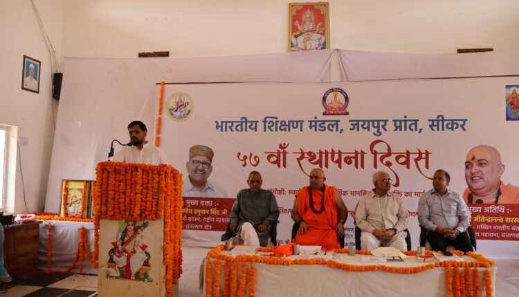 भारतीय शिक्षण मंडल, जयपुर प्रांत (सीकर इकाई) द्वारा 57वें स्थापना दिवस के उपलक्ष्य में सोमवार को श्री कल्याण राजकीय उच्च माध्यमिक विद्यालय, सीकर में एक भव्य कार्यक्रम आयोजित किया गया। इस अवसर पर “स्वबोध – औपनिवेशिक मानसिकता से मुक्ति का मार्ग” विषय पर राष्ट्रीय संगोष्ठी आयोजित हुई।
