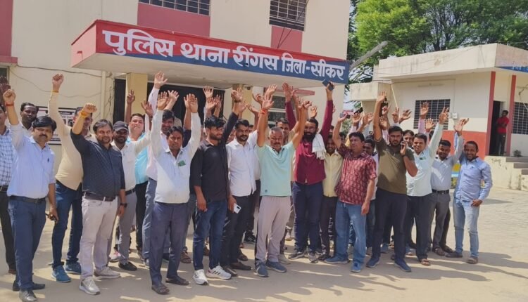 रींगस कस्बे में विद्युत विभाग के सहायक अभियंता कार्यालय में कार्यरत विद्युत कर्मचारी से एक युवक द्वारा मीटर रीडिंग लेने के दौरान मारपीट कर सरकारी रिकॉर्ड फाड़ने पर विद्युत विभाग के कर्मचारी विरोध में उतरे और रींगस पुलिस थाने पहुंच कर कार्यवाही की मांग की। पीड़ित लाइनमैन महिपाल जाट ने बताया कि वह मासिक रीडिंग शेड्यूल के अनुसार गढ़ के पीछे स्थित बलाईयों के मोहल्ले में गया हुआ था इसी दौरान राकेश पुत्र रतन लाल राणा ने गाली गलौज करते हुए मारपीट की और कपड़े फाड़ दिए, इसी के साथ रीडिंग लेने के सरकारी दस्तावेज भी छीन कर फाड़ दिए। युवक के घर का कुछ दिनों पहले बिल बकाया होने के कारण कनेक्शन काट दिया था जिस कारण वह पहले से ही आक्रोशित था। राजस्थान विद्युत तकनीकी कर्मचारी संघ के प्रदेश उपाध्यक्ष दिलीप सिंह झाला ने बताया कि निगम के कर्मचारी के साथ मीटर रीडिंग लेने के दौरान युवक ने मारपीट की और सरकारी रिकॉर्ड छीन कर फाड़ दिया जिसके विरोध में पुलिस थाने पहुंचकर विरोध जताया जा रहा है हमारी मांग है कि युवक को जल्द से जल्द गिरफ्तार कर पुलिस कार्रवाई की जाए अन्यथा प्रदेश भर में उग्र आंदोलन किया जाएगा। वहीं निगम के कनिष्ठ अभियंता सोमेंद्र चौधरी द्वारा पुलिस थाने में युवक के खिलाफ राजकार्य के दौरान कर्मचारी से मारपीट करने और सरकारी दस्तावेज फाड़ने की रिपोर्ट दी गई। पुलिस थाने में विरोध प्रदर्शन के दौरान सहायक अभियंता राकेश महला सहित अधीनस्थ कर्मचारी मौजूद रहे।