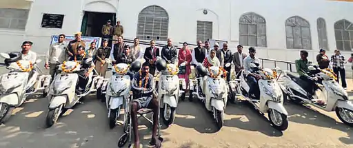 सामाजिक न्याय और अधिकारिता विभाग द्वारा मुख्यमंत्री दिव्यांगजनों स्कूटी योजना के तहत शुक्रवार को श्री कल्याण कन्या महाविद्यालय में स्कूटी वितरण कार्यक्रम आयोजित किया गया। इस अवसर पर पुलिस अधीक्षक भुवन भूषण यादव और अतिरिक्त जिला कलेक्टर रतन कुमार स्वामी ने दिव्यांग जनों को स्कूटी प्रदान की।