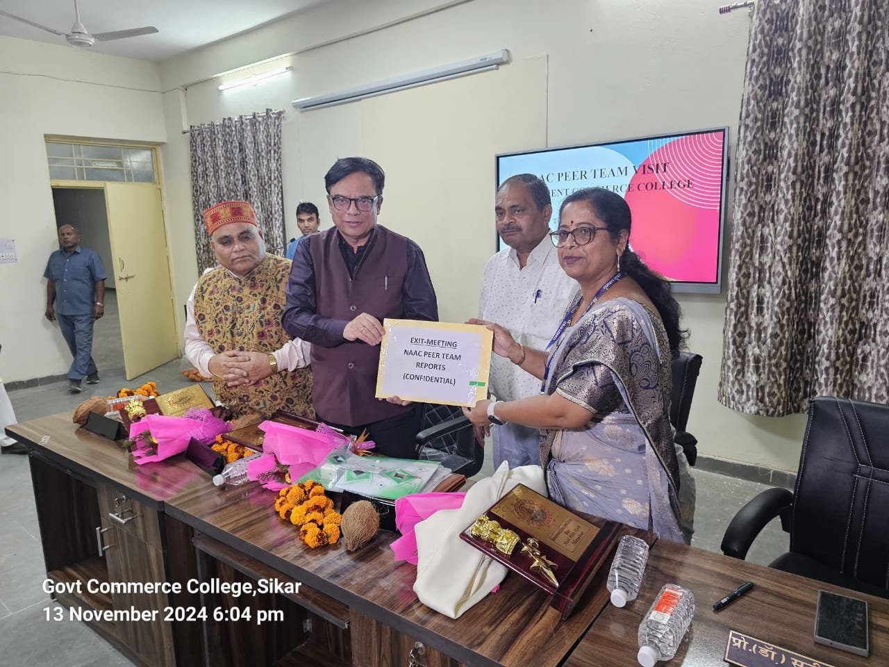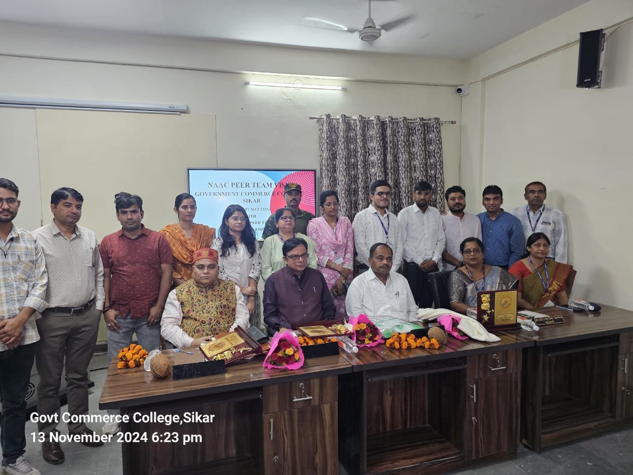 राजकीय वाणिज्य महाविद्यालय सीकर में नैक टीम के द्वारा निरीक्षण कार्य 12 एवं 13 नवंबर को किया गया नैक टीम में चेयरपर्सन के रूप में डॉक्टर आर श्रीधर ,वीसी कलिंगा विश्वविद्यालय रायपुर ,छत्तीसगढ़, मेंबर कोऑर्डिनेटर के रूप में प्रोफेसर (डॉक्टर)कृपा शंकर जयसवाल, महात्मा गांधी काशी विद्यापीठ वाराणसी, उत्तर प्रदेश एवं डॉ सुभाष वागले प्राचार्य श्री वी,एन आर्ट्स एंड ए एन कॉमर्स कॉलेज, महाराष्ट्रा से पधारे हैं।