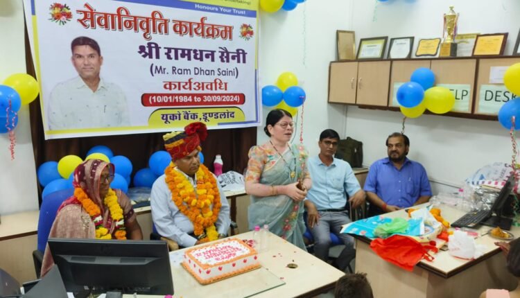 यूको बैंक की स्थानीय शाखा में विशेष सहायक के रूप में कार्यरत रामधन सैनी का सेवानिवृत्ति पर सम्मान समारोह किया गया आयोजित