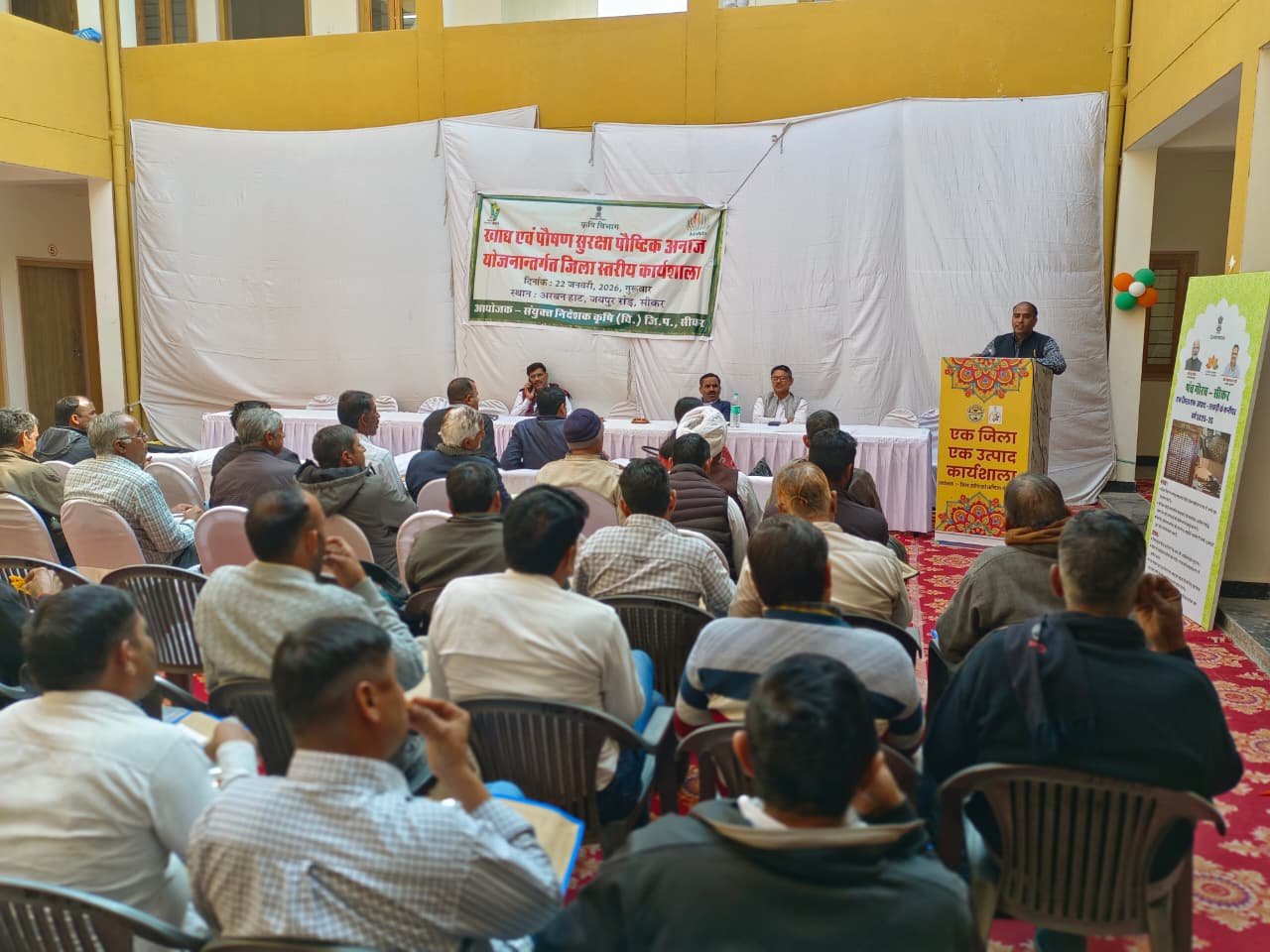 राष्ट्रीय खाद्य सुरक्षा एवं पौषण मिशन पौष्टिक अनाज योजनान्तर्गत जिला स्तरीय कार्यशाला का आयोजन 22 जनवरी 2026 गुरुवार को अर्बन हाट जयपुर रोड सीकर में किया गया। कार्यशाला में जिले के जन-प्रतिनिधियों, विभागीय अधिकारियों, मिलेट्स से संबंधित प्रगतिशील कृषकों, स्वयं सहायता समूहों (एसएचजी), किसान उत्पादक संगठनों (एफपीओ) एवं मिलेट उद्यमियों सहित कुल 107 प्रतिभागियों ने भाग लिया।