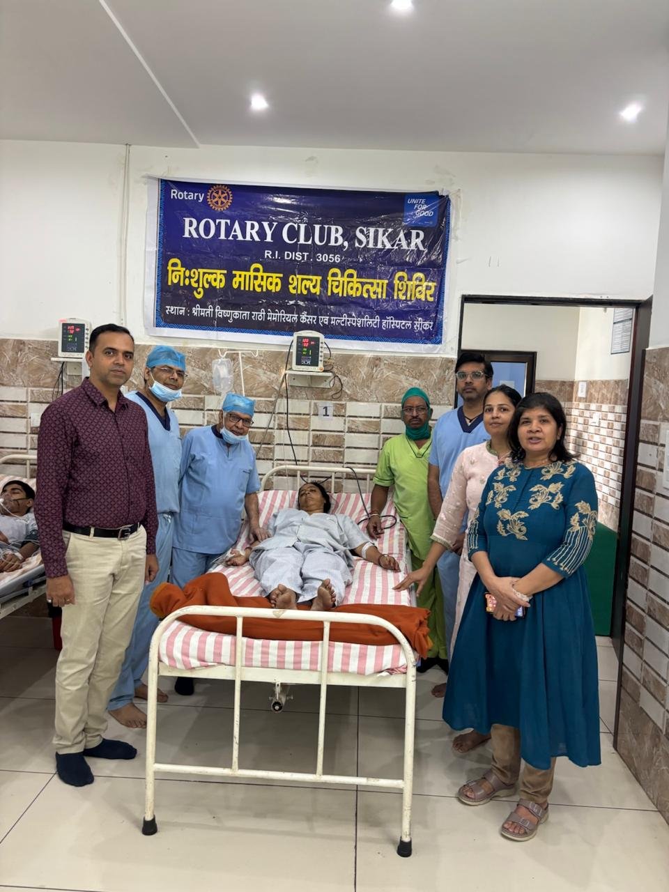 रोटरी क्लब सीकर की ओर से सांवली रोड स्थित राठी अस्पताल में निशुल्क प्रख्यात मासिक सर्जरी कैम्प आयोजन किया गया। क्लब अध्यक्ष धीरज कँवर एवं सचिव गौरव सोमानी ने बताया कि इस चिकित्सा शिविर मे 17 जरूरतमंद मरीजों के ऑपरेशन कर उनको दवा वितरित की गई।’