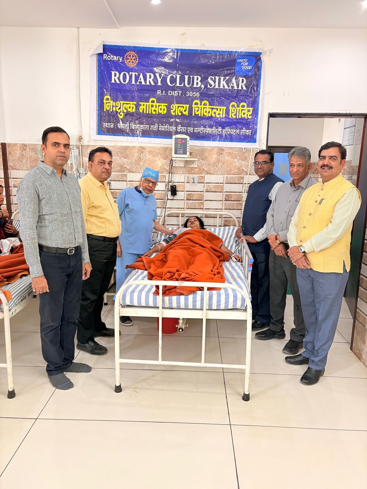 रोटरी क्लब सीकर की ओर से सांवली रोड स्थित राठी अस्पताल में निशुल्क चिकित्सा शिविर आयोजन किया गया। क्लब अध्यक्ष धीरज कँवर एवं सचिव गौरव सोमानी ने बताया कि इस चिकित्सा शिविर मे 13 जरूरतमंद मरीजों के ऑपरेशन कर उनको दवा वितरित की गई।’ ’शिविर में विभिन्न तरह के 13 आपरेशन किए गए। जिनमें मुख्यतः 2 गॉल ब्लैडर, 4 हिस्टरेक्टोमी, 2 पाइल्स, 2 ब्रेस्ट लम्प एवं 3 अन्य ऑपरेशन है।’ ’उक्त शिविर कैम्प में डॉ जी एल राठी, डॉ जितेन्द्र कचोलिया, डॉ दिव्या कचोलिया, डॉ अंकुश राठी, डॉ अनीता राठी, डॉ मोहन परमार ने सेवायें दी। शिविर में राठी अस्पताल के स्टॉफ द्वारा सेवाएं प्रदान की गई । साथ में क्लब के सदस्य गण पूर्व प्रांतपाल रो. डॉ. बलवंत सिंह चिराना, वरिष्ठ रोटेरियन सुनील मोर, संजय कुमावत, अमर सिंह कविया, गौरव सोमानी एवं अन्य सदस्य रहकर शिविर में सहयोग प्रदान किया ’उक्त शिविर की मुख्य विशेषता यह है कि आपरेशन वर्तमान समय की नवीनतम आधुनिक तकनीक से किए जाते है।’ ’उक्त शिविर रोटरी क्लब सीकर द्वारा दो दशक से भी अधिक समय से चल रहा है जिसमें आसपास के 4 जिलों के मरीज ऑपरेशन के लिए पहुंचते हैं।’
