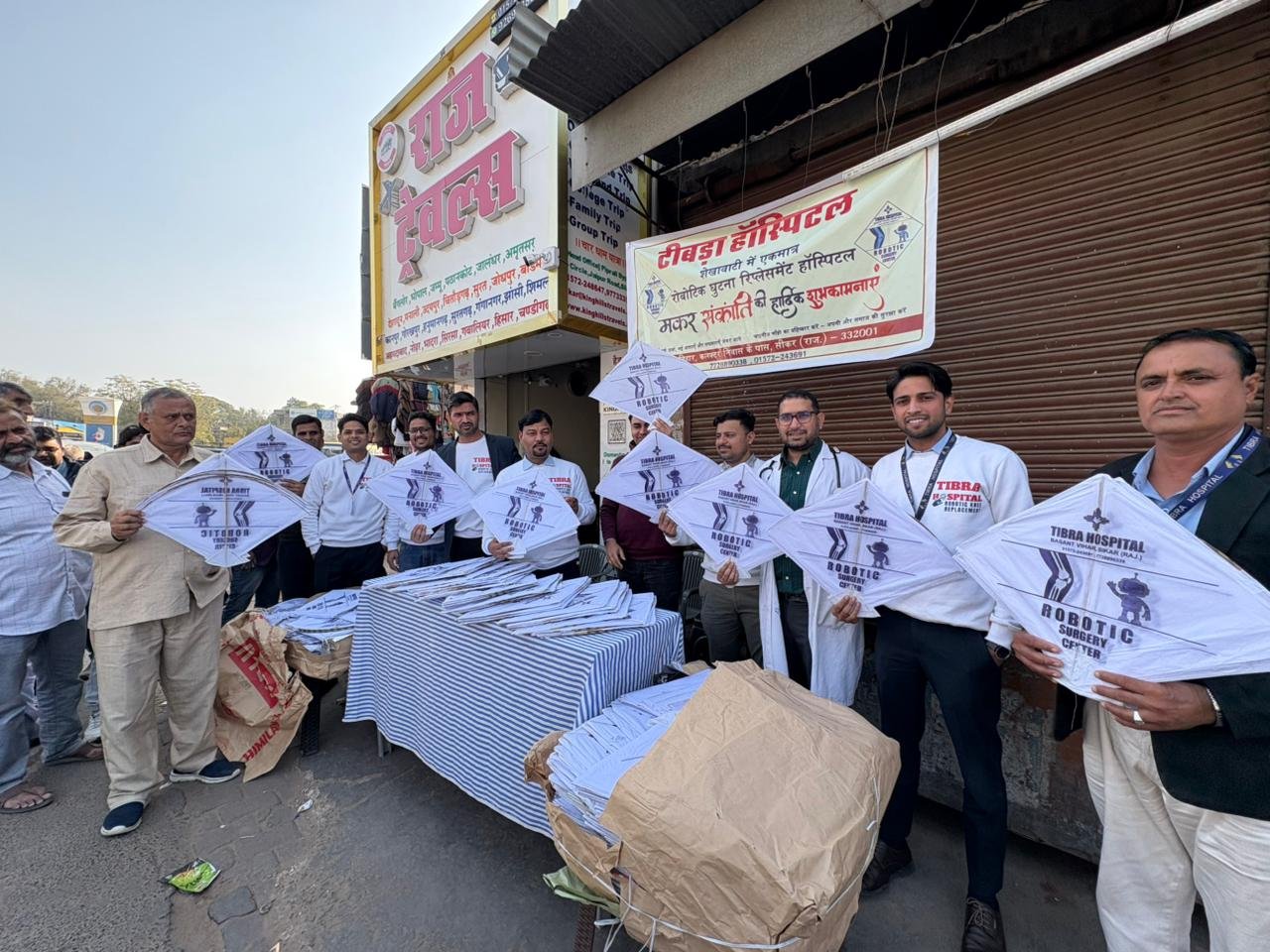 पतंग वितरण के माध्यम से उत्तरायण पर धूप के लाभ व रोबोटिक घुटना व कूल्हा रिप्लेसमेंट के लिये जागरूक किया गया।