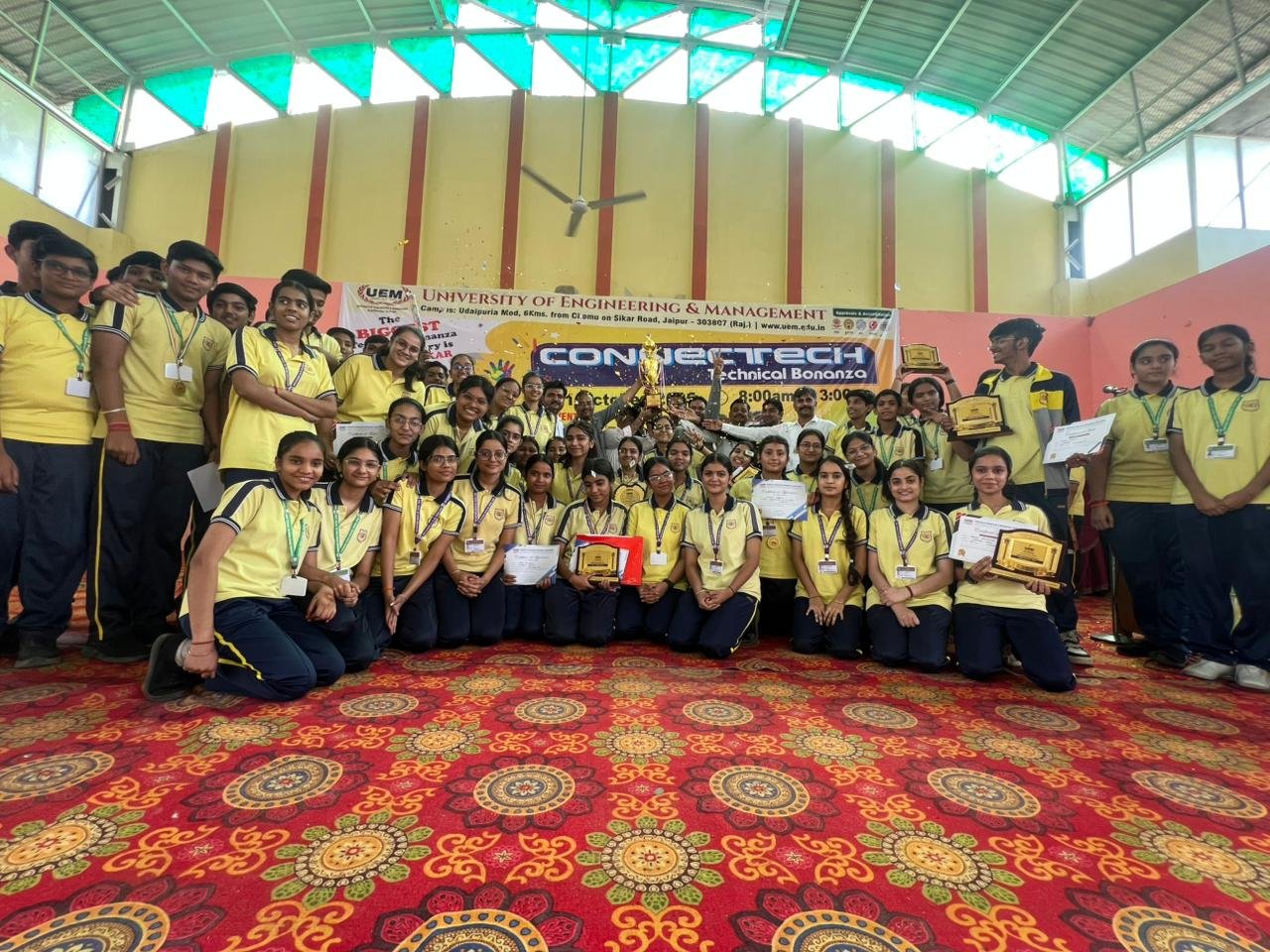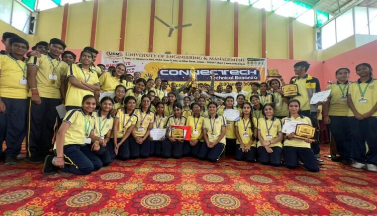 यूनिवर्सिटी ऑफ इंजिनियरिंग एण्ड मैनजमेंट (UEM) द्वारा रेलवे सामुदायिक भवन में विभिन्न प्रतियोगिताओं का आयोजन हुआ। इन प्रतियोगिताओं में वर्धमान विद्या विहार स्कूल एवं जैन स्कूल ने चैम्पियन ट्रॉफी जीती। संस्था के अध्यक्ष दीपक संगही ने बताया कि इस प्रतियोगिता में जिले के विभिन्न विद्यालयों के छात्र-छात्राओं ने भाग लिया। प्रतियोगिता में प्रथम पुरस्कार के लिए 7000 रुपए, द्वितीय पुरस्कार के लिए 4000 रूपए एवं तृतीय पुरस्कार के लिए 3000 रुपए नकद प्रदान किए गए। सचिव संजय संगही ने बताया कि वर्धमान स्कूल एवं जैन स्कूल ने कुल 33000 रूपये के नकद पुरस्कार प्राप्त किये । ड्राइंग प्रतियोगिता में नीतिशा वर्मा ने प्रथम, मैथ्स- प्रो प्रतियोगिता में प्रियम खेतान ने प्रथम एवं निकिता श्रीवास्तव ने द्वितीय, पाथोगोरस स्टार प्रतियोगिता में कृति काबरा ने प्रथम एवं मॉडल प्रतियोगिता में जानवी शर्मा ने द्वितीय स्थान तथा बायो प्रतियोगिता में वेदिका जैन ने द्वितीय स्थान प्राप्त किया l संस्था प्रधान डॉ. मीनाक्षी भार्गव ने बताया कि तनुष्का शर्मा, सोहा जोड, नंदिनी साजवानी, नेहा भार्गव, यशु अग्रवाल, किंजल राठौड़ एवं मयंक सोमानी ने सांत्वना पुरस्कार प्राप्त किया l संस्था के उपाध्यक्ष आशीष जयपुरिया, सह-सचिव रितेश रारा, कोषाध्यक्ष सुशील काला, सदस्य सुनील पहाड़िया, मनोज पाटोदी, प्रियंक गंगवाल, अमित पिराका, कैलाश जयपुरिया, निखिल अजमेरा एवं विद्यालय परिवार ने सभी विजेताओं को बधाई दी। इस अवसर पर विद्यालय में जश्न का माहौल रहा l