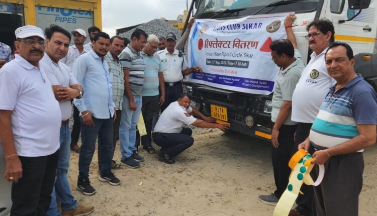 लायंस क्लब सीकर द्वारा यातायात सुरक्षा हेतु रिफ्लेक्टर लगाए गए
