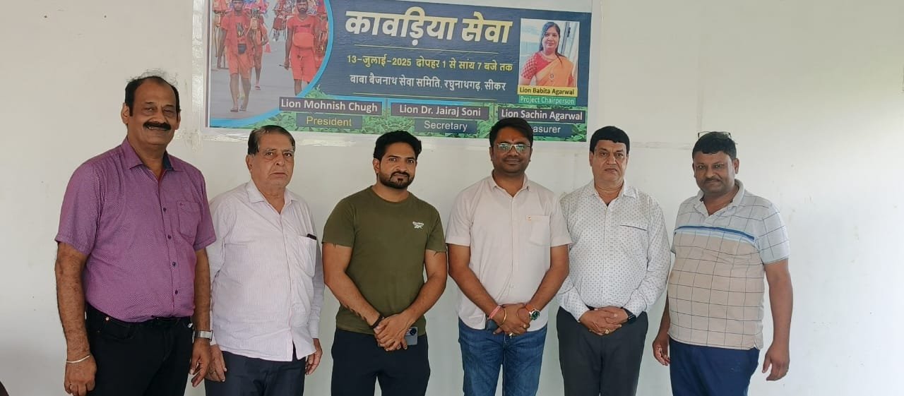 सीकर। लायंस क्लब सीकर प्राइड द्वारा सावन मास के चौथे रविवार यानी 3 अगस्त 2025 को रघुनाथगढ़ स्थित बाबा बैजनाथ सेवा समिति परिसर में कावड़ियों की सेवा हेतु भव्य प्रोजेक्ट आयोजित किया गया। यह सेवा प्रकल्प दोपहर 1 बजे से शाम 7 बजे तक आयोजित रहा, जिसमें श्रद्धालु कावड़ियों को जलपान, फल, शीतल जल एवं प्राथमिक स्वास्थ्य सुविधा उपलब्ध करवाई गई। इस प्रोजेक्ट के चेयरपर्सन लायन बबिता अग्रवाल जी रहीं, जिनके मार्गदर्शन में संपूर्ण कार्यक्रम सुव्यवस्थित रूप से संपन्न हुआ।