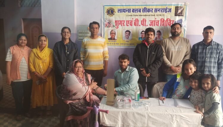 लायंस क्लब सीकर सनराइज और डॉ. बी. लाल क्लिनिकल लेबोरेटरी के तत्वाधान में कुमावत कॉम्प्लेक्स, सावित्री सदन के पास निशुल्क शुगर और बी.पी. जांच शिविर आयोजित किया गया। क्लब अध्यक्ष सुगन चंद कुमावत ने बताया कि शिविर में 28 लोगों की जांच की गई। इस अवसर पर मरेठिया परिवार के सभी सदस्य मौजूद रहे।