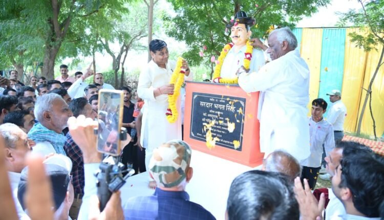 नेछवा पंचायत समिति के घिरनिया बड़ा ग्राम में शहीद ए आजम भगत सिंह जयंती के अवसर पर उनकी प्रतिमा का अनावरण एवं भगत सिंह पार्क का लोकार्पण प्रदेश कांग्रेस अध्यक्ष गोविंद सिंह डोटासरा एवं सांसद कॉमरेड अमराराम द्वारा किया गया। इस अवसर पर आयोजित सभा को संबोधित करते हुए कॉमरेड अमराराम ने कहा कि भगत सिंह और उनके क्रांतिकारी साथियों ने जिन मूल्यों और आदर्शों के लिए बलिदान दिया, हम वैसा देश और समाज आज भी नहीं बना पाएं हैं। भगतसिंह का सपना था कि आजादी के बाद भारत में वर्गहीन शोषणविहीन समाजवादी समाज की स्थापना हो तथा सत्ता पर किसान- मजदूर- मेहनतकश जनता का नियंत्रण हो। लेकिन आज पूंजीवादी कॉरपोरेट और सांप्रदायिक ताकतों ने सत्ता को हथिया कर देश के तमाम संसाधनों पर नियंत्रण कर लिया है तथा संविधान और लोकतंत्र को तहस नहस कर दिया है। इसीलिए किसानों को आंदोलन के लिए मजबूर होना पड़ा। किसान आंदोलन ने देश के संविधान और लोकतंत्र को बचाने का काम किया है। अब जरूरत इस बात की है कि देश का युवा, किसान, मजदूर और आम जनता शहीद ए आजम भगत सिंह से प्रेरणा लेकर उनके सपनों के भारत का निर्मित करने, देश के संविधान और लोकतंत्र को बचाने के लिए इस संघर्ष को और व्यापक बनाए।