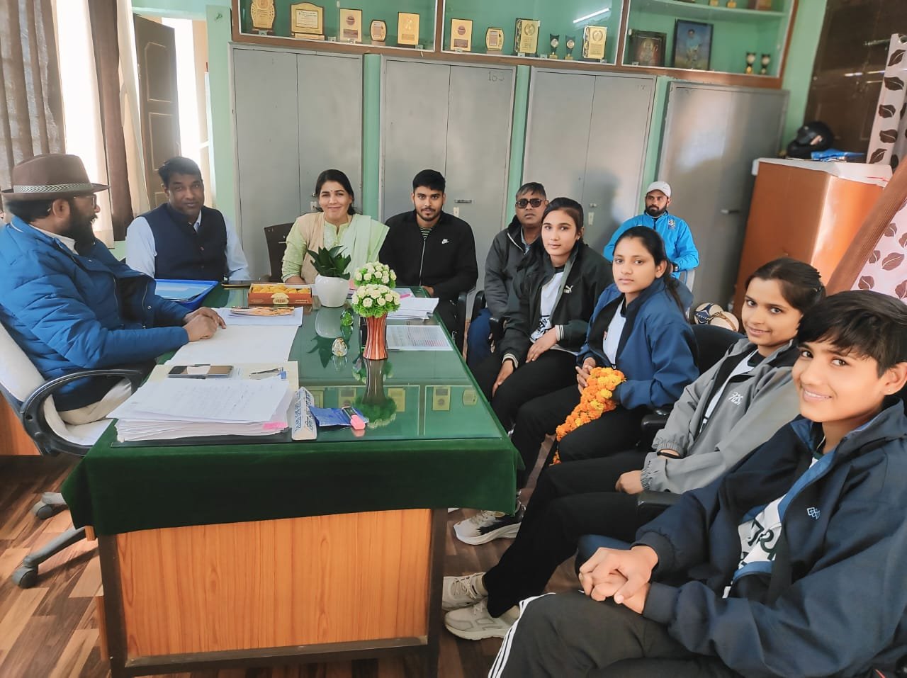 शूटिंग बॉल में इतिहास रचने पर जिला खेल स्टेडियम सीकर में किया स्वागत…